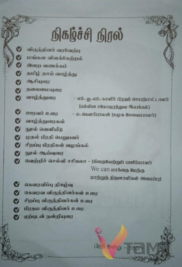 நிகழ்வின் கௌரவ விருந்தினர்களாக திரு. இ நித்தியானந்தன் [சிரேஷ்ட கலாசார உத்தியோகத்தர்]ஐ. எம். சுரைஸ் [பணிப்பாளர் – அறிவிருட்ஷம் துரித கல்வி சமூகமேம்பாடு] ம. கௌரிபாலன் [சமூகசேவையாளர்] ஏ.ஆர் றிஷானா ரஹீம் [பன்னூலாசிரியர் ,ஆசிரியை -புத்தளம் ஸாஹீரா தேசியகல்லூரி] ஆகியோரும் வருகை தரவுள்ளனர்.