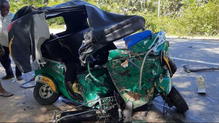 கிளிநொச்சியிலிருந்து யாழ் நோக்கிப் பயணித்த முச்சக்கர வண்டியை, யாழிலிருந்து மின்கம்பங்கள் ஏற்றிவந்த வாகனம் மோதியுள்ளது.