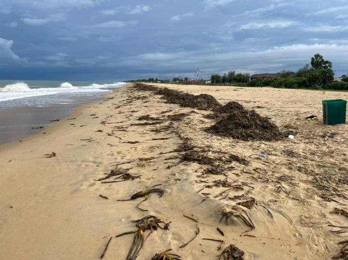 இதேவேளை நேற்று யாழ்ப்பாண கடற்கரையிலும் இவ்வாறு கடற்தாவரங்கள் கரையொதுங்கி இருந்தமையும் குறிப்பிடத்தக்கது
